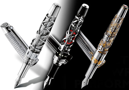 Ручка помещена в черную лаковую коробочку, к ней прилагается прозрачная чернильница с палладиево-серебряной пробкой, покрытой золотом. Серебряная ручка с родиевыми деталями выпущена в количестве 500 экземпляров, тогда как золотых всего десять. На прошедшей выставке Baselworld была представлена новинка — ручка с пером из белого золота в 18 карат.
